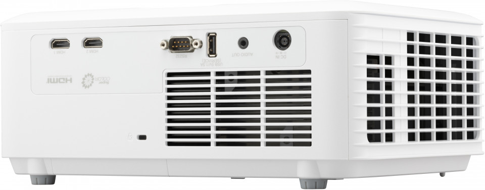 Короткофокусная оптика 0.49:1 проецирует 80" экран с 1.1 метра, контраст 300 000:1, zум 1.2x. Коррекция трапеции ±40° H/V + уголовая, поворот 360°, портретный режим. Шум всего 26 дБ в SuperEco режиме.
